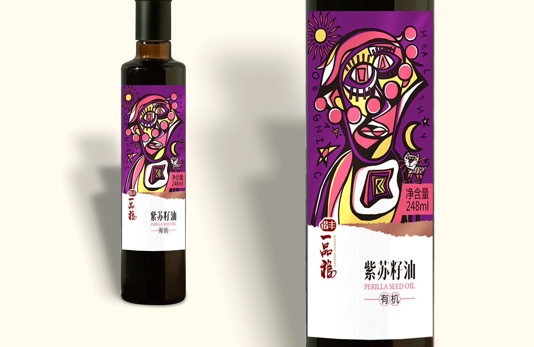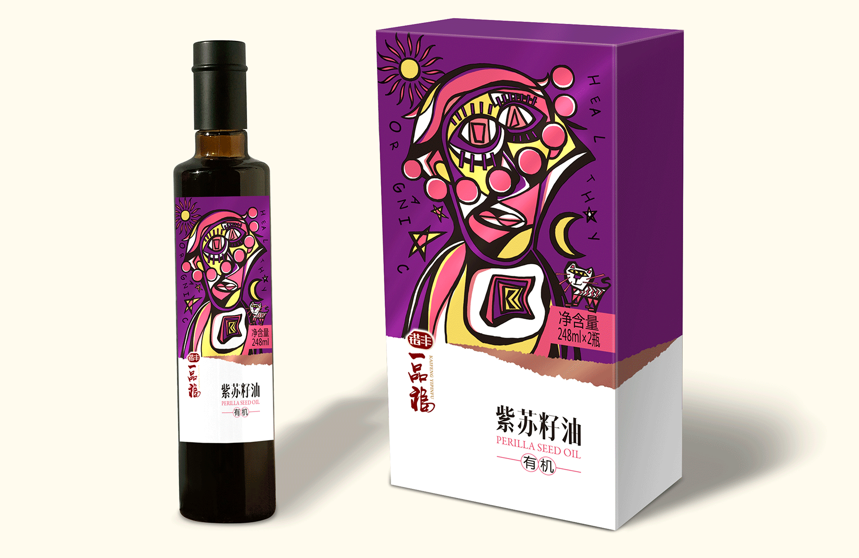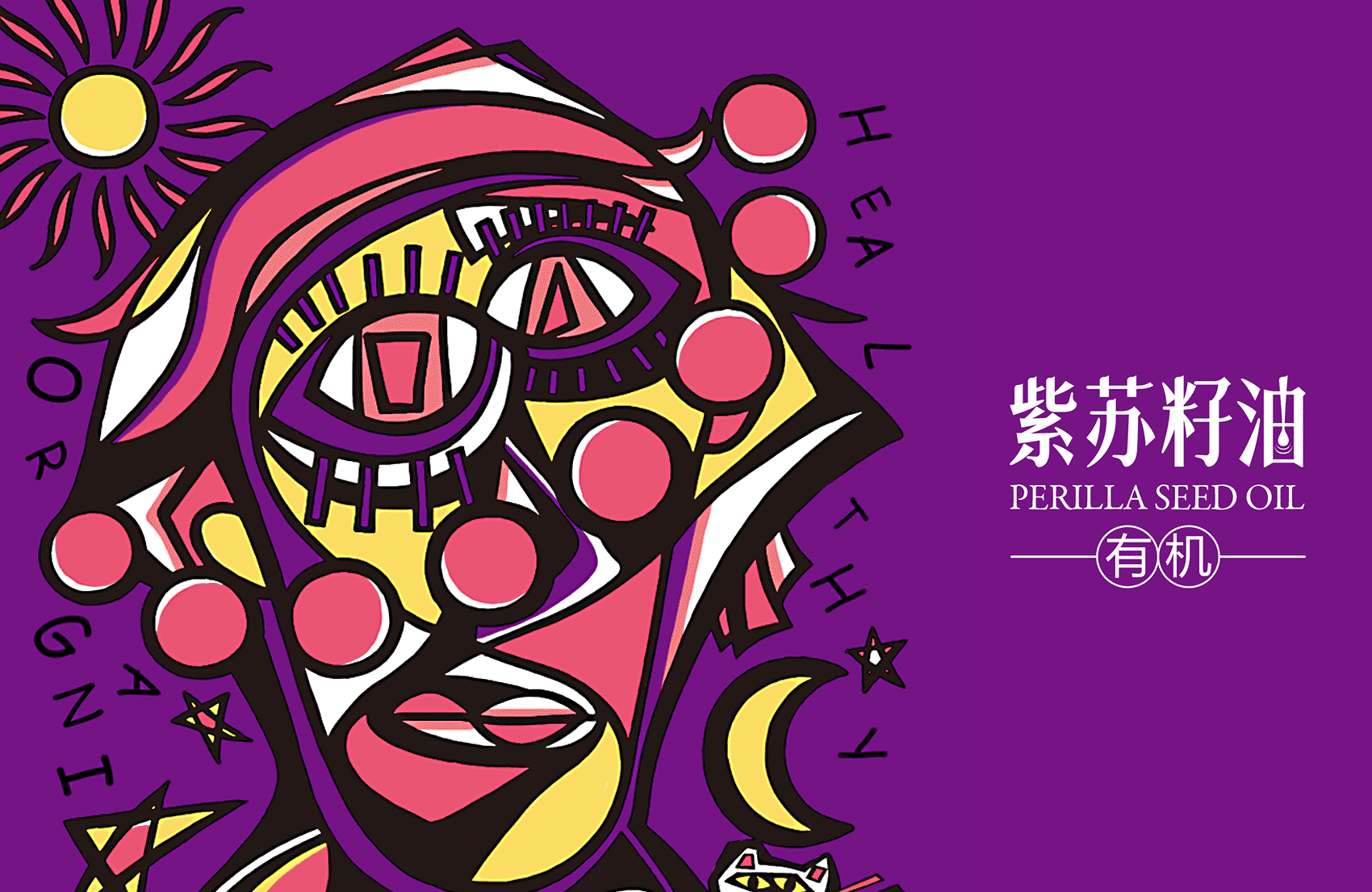 鍇豐一品福有機(jī)紫蘇油針對(duì)高端市場(chǎng),定位在精品油范疇,在同質(zhì)化嚴(yán)重的市場(chǎng)環(huán)境下僅僅強(qiáng)調(diào)產(chǎn)品品質(zhì)遠(yuǎn)不能脫穎而出,繽策搜集大量資料,在經(jīng)過集體討論和頭腦風(fēng)暴后,將以抽象藝術(shù)的形式作為突破口,將印象派的色調(diào)與抽象派的畫風(fēng)相結(jié)合,創(chuàng)造出正在無限想象的大腦的形象,粉紫色的圓形代表著八大行星,象征著正在運(yùn)動(dòng)中的自我宇宙,通暢的線條與鮮艷的色塊營(yíng)造出跳躍感,代表使用紫蘇油后思維開拓,馳騁在幻想中消費(fèi)者,極具感染力。