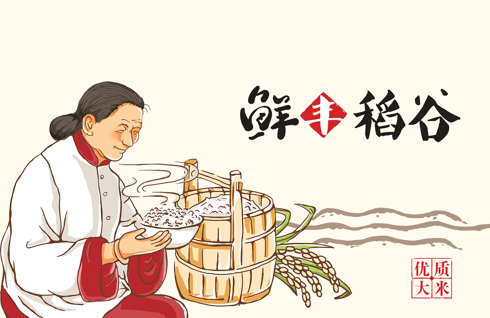 以稻米的新鮮為核心主題,系列產(chǎn)品中,每一個(gè)單品都是當(dāng)年出產(chǎn)的新米,稻谷鮮豐諧音道谷仙風(fēng),將中華民族潛意識(shí)中最悠久最深刻的桃源文化挖掘出來,讓自然田園的閑適味道與產(chǎn)品的新鮮清新相結(jié)合,創(chuàng)造出獨(dú)屬于品牌的清香印象。視覺方面使用手繪水彩風(fēng)格的插畫,描繪出勤勞耕作,樸實(shí)煮米的老媽媽的形象,搭配手寫毛筆字,將產(chǎn)品豐饒清香的特點(diǎn)通過插畫表現(xiàn)出來,穩(wěn)重大地色系傳遞出品牌踏實(shí)的氣質(zhì),給人以安心之感。