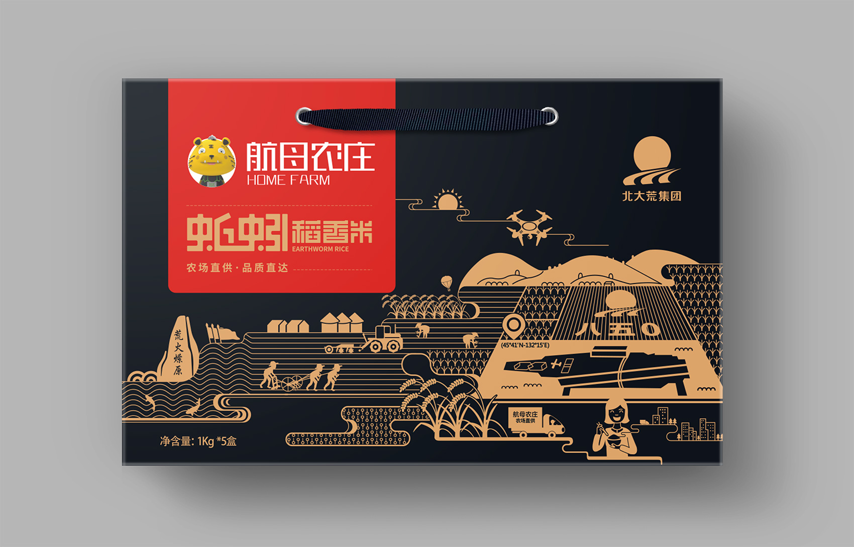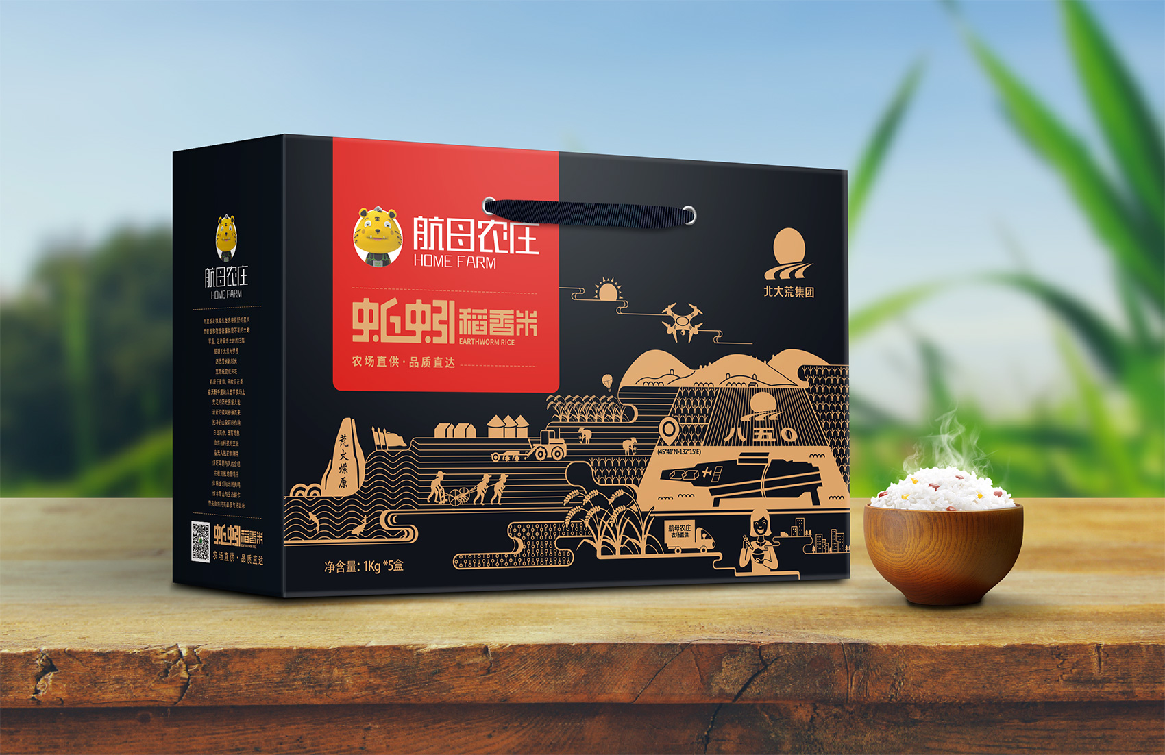 超級品牌源于超級創(chuàng)意,而超級創(chuàng)意就是一個深入人心的超級符號。所以品牌要么始于符號,要么成為符號,通常兩者都是。繽策團隊在與企業(yè)座談中了解到有關(guān)八五零農(nóng)場的軍墾歷史,以及產(chǎn)品本身的特點——使用蚯蚓有機肥進行灌溉培育,在得天獨厚的自然條件與有機肥料的雙重作用下,自然讓蚯蚓米擁有更好的品質(zhì),在繽策團隊的頭腦風暴下,將八五零農(nóng)場的自然面貌與當?shù)氐貥诵越ㄖ嗷ト诤希褂帽馄交瀹媽⑵放坪诵膬r值——農(nóng)場直供,以視覺化策方式呈現(xiàn)出來,簡約流暢,豐而不亂,同時也向消費者傳遞出從種植到收割,從加工到運輸?shù)娜^程。
