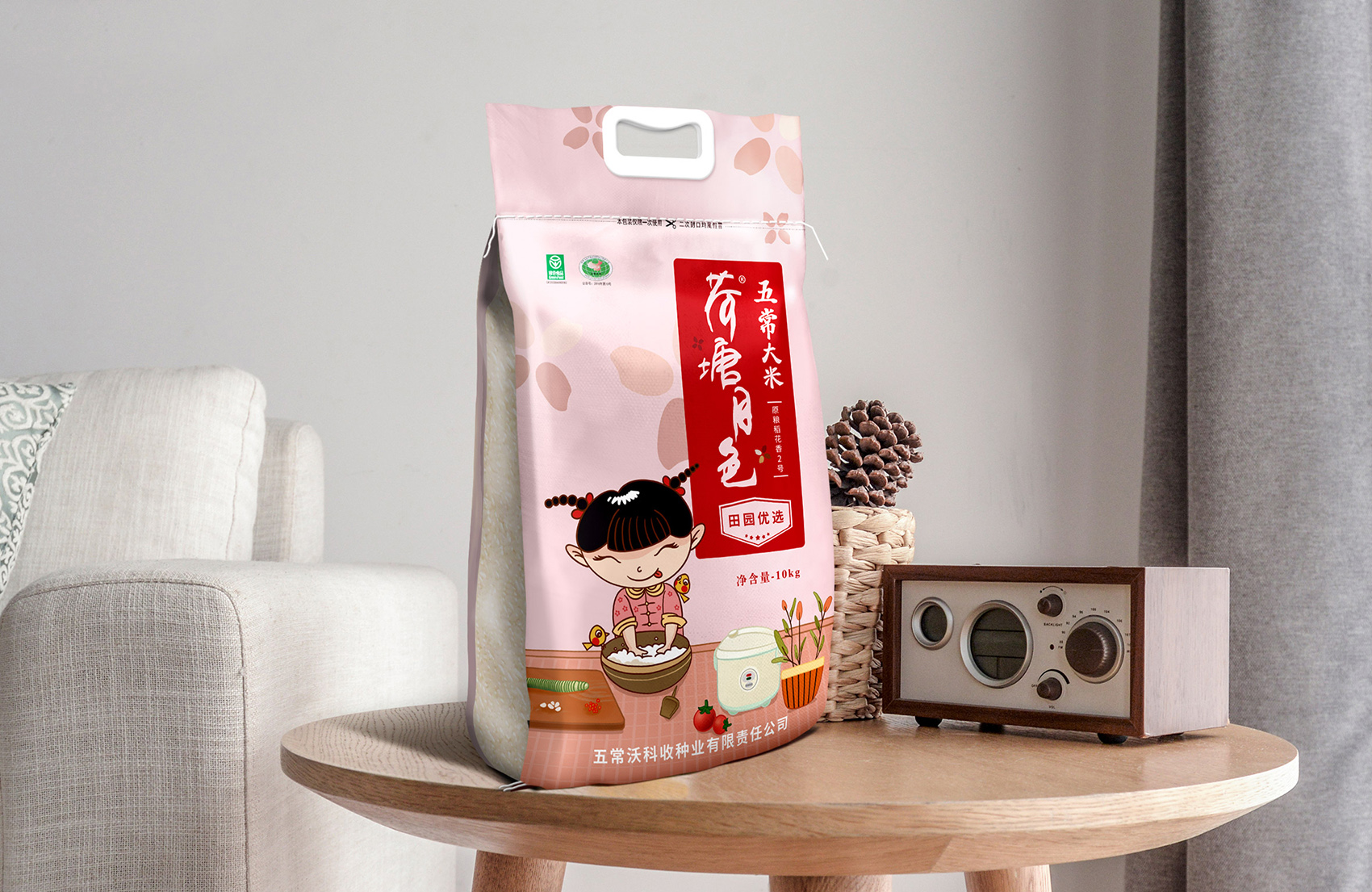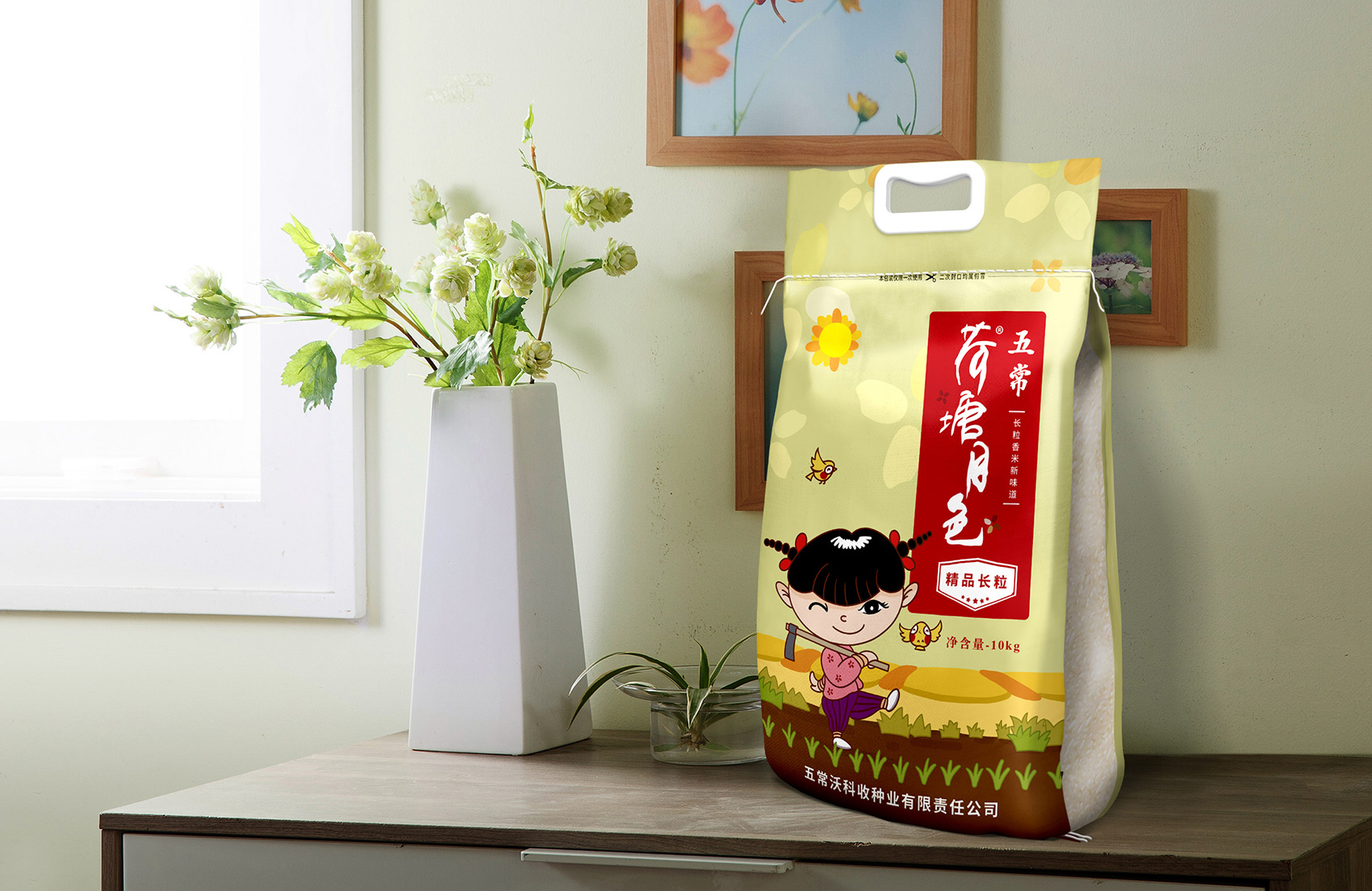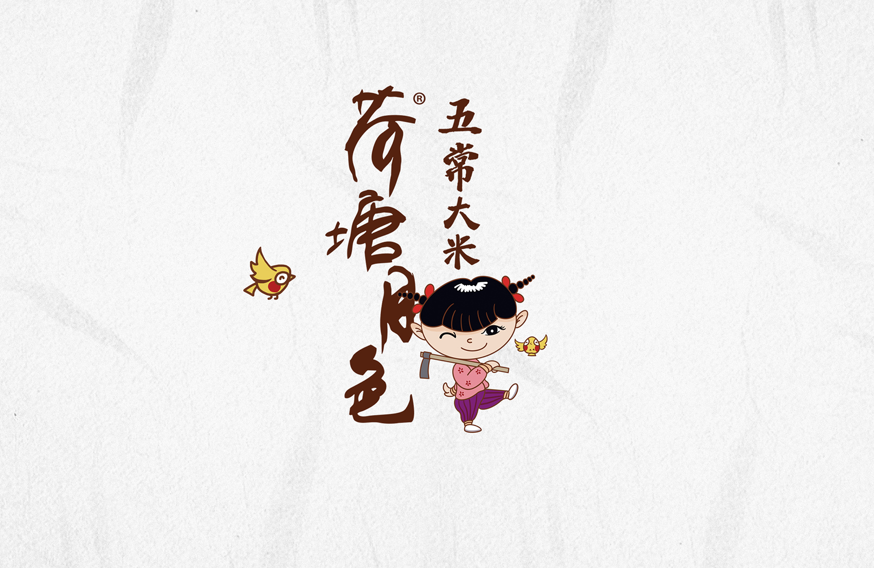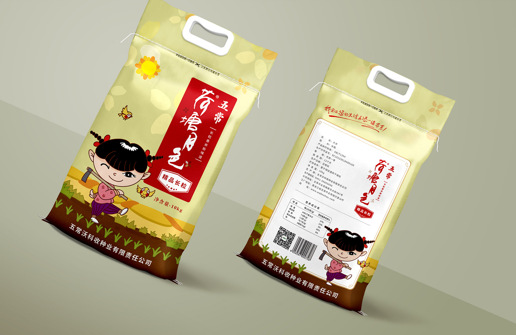 繽策通過與企業(yè)深入的會(huì)談與實(shí)地考察及調(diào)研,以及對(duì)市場(chǎng)對(duì)了解及經(jīng)驗(yàn)。為了讓更多的消費(fèi)者快速了解品牌所傳遞的核心價(jià)值,創(chuàng)意圍繞IP進(jìn)行,品牌IP化是不可阻擋的趨勢(shì),IP形象生動(dòng)有趣,后期可延展出VI、包裝、微視頻等多種宣傳方式,同時(shí)IP也可以有效的統(tǒng)領(lǐng)包裝風(fēng)格,輕松形成套系感,有效的解決包裝零散的問題;設(shè)計(jì)風(fēng)格定義鄉(xiāng)土氣息濃厚的卡通風(fēng)格,色彩上選取了水稻自然成熟的風(fēng)格,豐收的金色、質(zhì)樸的大地之色與傳統(tǒng)中代表吉祥與喜悅的紅色,給人以踏實(shí)可信賴之感,有效的拉近品牌與消費(fèi)者的距離。在畫面上將IP至于鄉(xiāng)下的生活場(chǎng)景中,除草、收割、淘米、吃飯,更具有真實(shí)感,配合討喜的鄉(xiāng)村丫頭形象,讓消費(fèi)者通過包裝聯(lián)想到鄉(xiāng)下自然閑適的田園生活,引起更多共鳴,獲得消費(fèi)者在情感層面上更多的認(rèn)同。