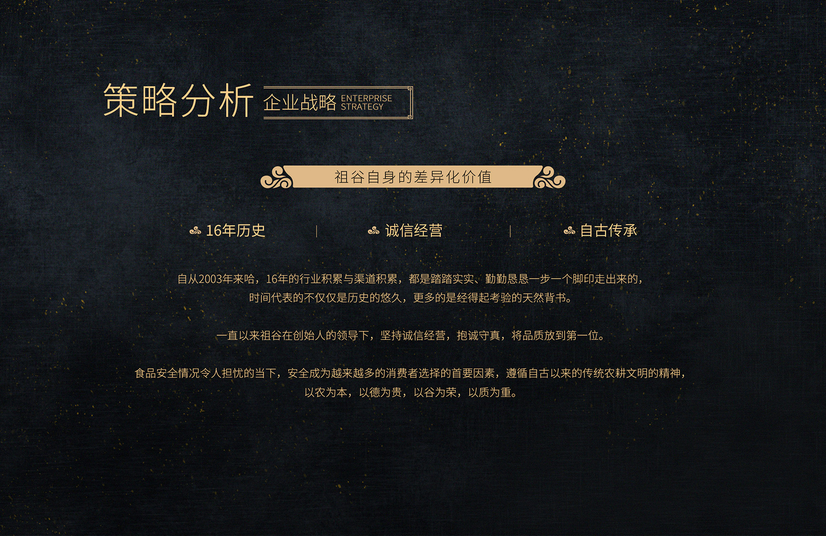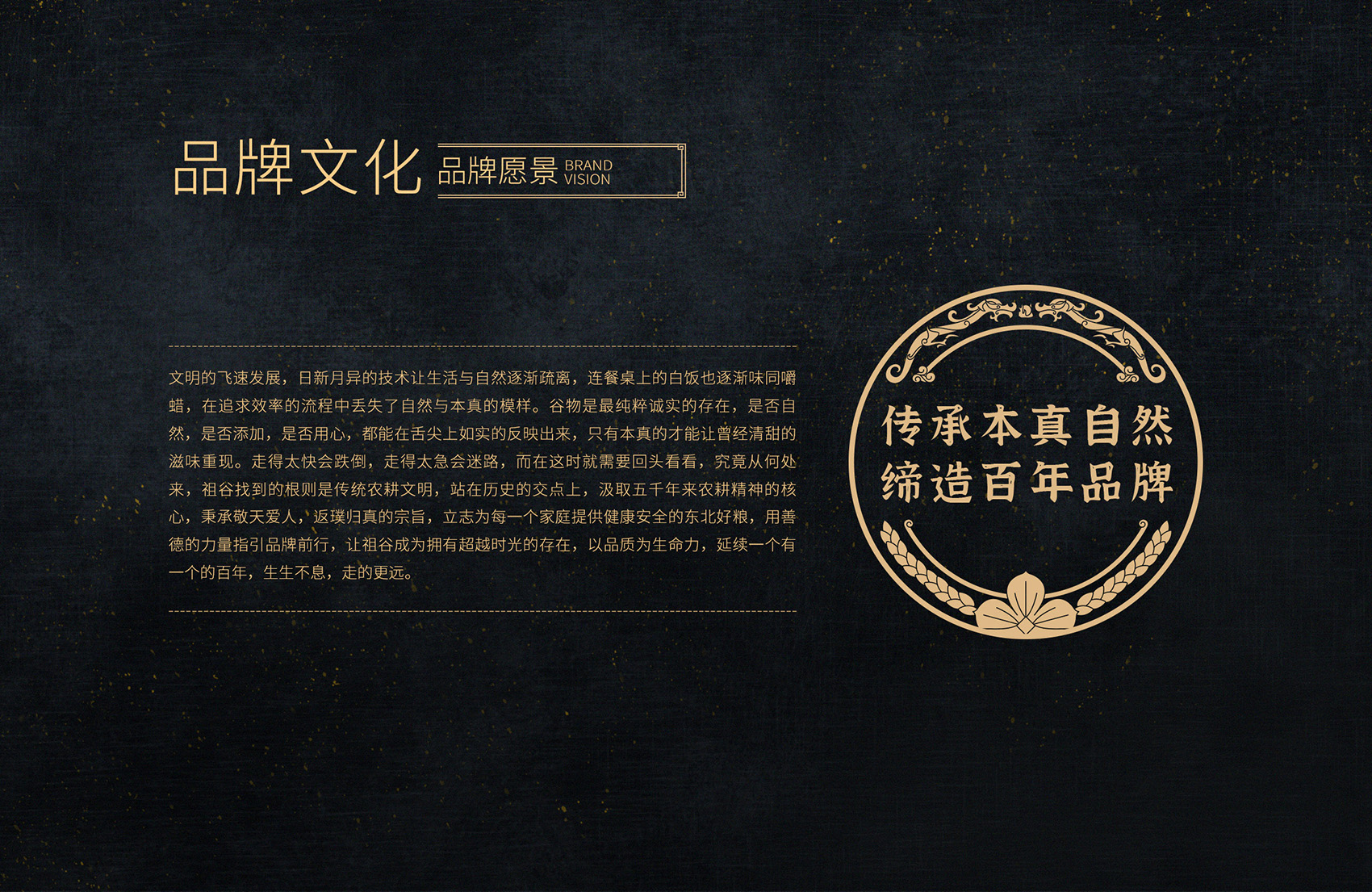 自成立開(kāi)始祖谷米業(yè)就秉持著不坑人、不騙人、不害人,質(zhì)量第一,誠(chéng)信為本的態(tài)度,加工生產(chǎn)本地大米,主要的銷(xiāo)售模式以大流通、經(jīng)銷(xiāo)商代理為主,品牌文化與品牌形象系統(tǒng)呈現(xiàn)碎片化,原有產(chǎn)品包裝畫(huà)面單一,無(wú)法凸顯品牌,與當(dāng)下消費(fèi)群體的審美不匹配,無(wú)法在競(jìng)爭(zhēng)激烈的東北大米細(xì)分市場(chǎng)中脫穎而出,為了進(jìn)一步提升品牌整體構(gòu)架,拓展直接面向消費(fèi)者的渠道如商超,祖谷米業(yè)決心從源頭開(kāi)始提煉創(chuàng)造品牌體系,所以企業(yè)希望繽策總結(jié)品牌在16年發(fā)展歷程中的差異化,并在品牌定位與品牌文化、形象與包裝上進(jìn)行系統(tǒng)化的品牌規(guī)劃。