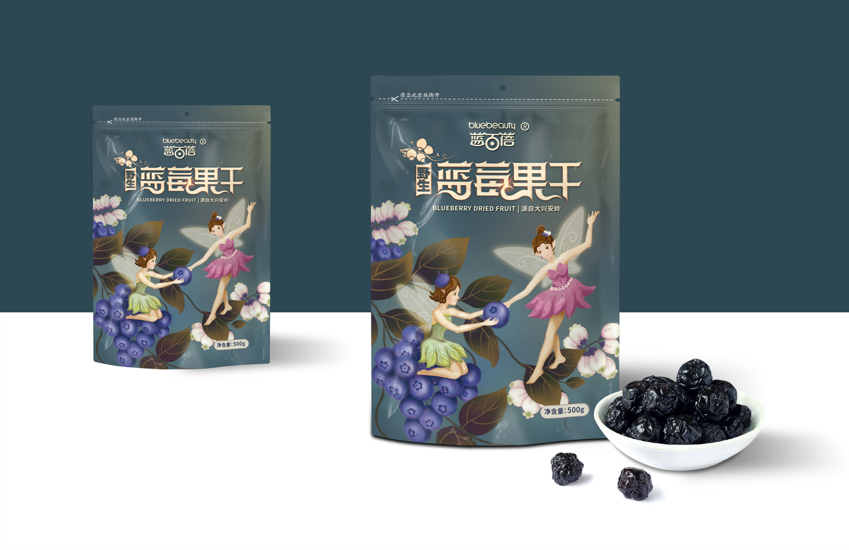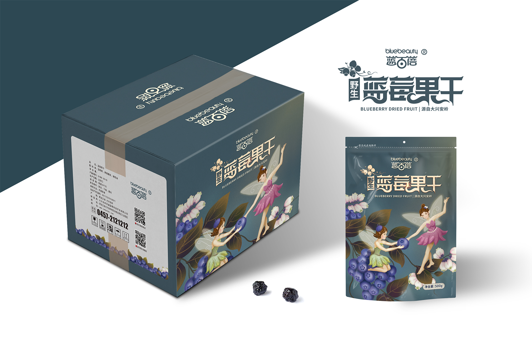 經(jīng)過繽策與企業(yè)方負(fù)責(zé)人的溝通及信息收集整理,產(chǎn)品定位主要以電商銷售為主,面向的群體也是年輕人士和熱愛藍(lán)莓的健康人士?;诶_策對市場的了解,制定出清新、簡約、特質(zhì)的包裝設(shè)計方案。配合主題的需要,副品字體也進(jìn)行了重新設(shè)計。以主題“藍(lán)莓仙子的愛”進(jìn)行創(chuàng)意插畫,并希望點亮消費者內(nèi)心喜愛的火焰。