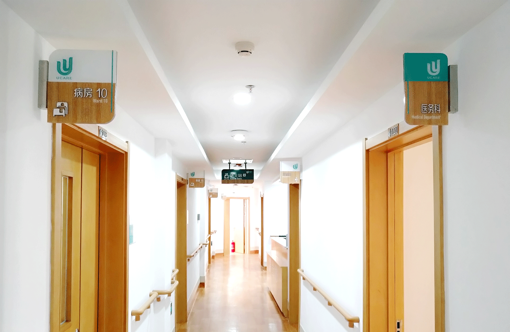 訂制整套VI及應用項目是解決優(yōu)護視覺形象與空間統(tǒng)一的最優(yōu)解??紤]到辨識度與環(huán)境氛圍,在確定主色調后,針對不同下屬機構進行整合規(guī)劃空間結構,不同科室的導視牌配以形象化的圖標,極具辨識度;針對老年群體受眾,空間風格參考日本、新加坡等亞洲高端醫(yī)療機構,將溫馨如家的氛圍及人性化關懷植入其中,締造新型綜合高端養(yǎng)老設施。