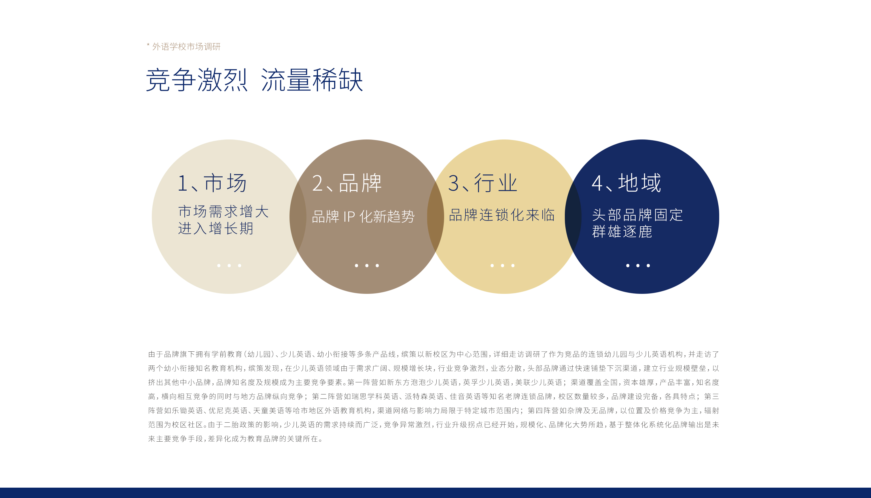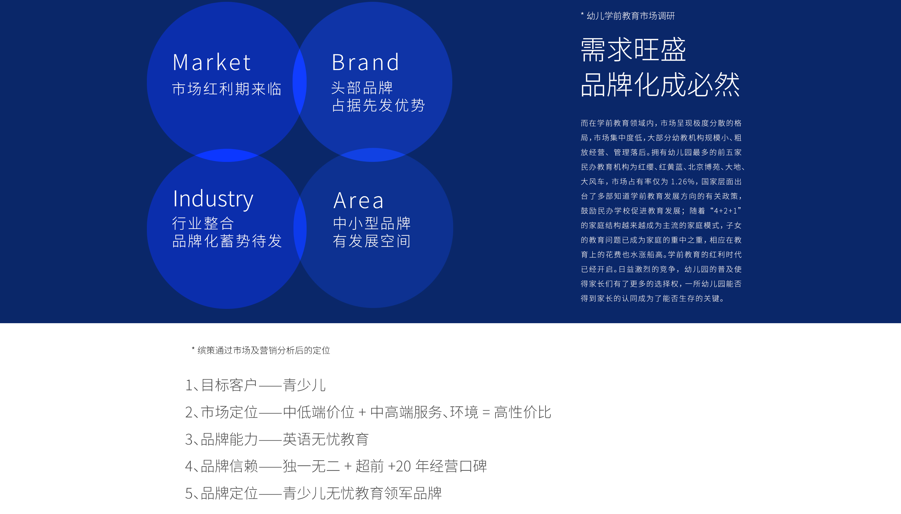 教育行業(yè)屬于剛需市場(chǎng),貫穿著從學(xué)齡前至本科及以上,其重要性不言而喻,而其特殊性在于消費(fèi)決策者與消費(fèi)體驗(yàn)者的錯(cuò)位,即選擇教育品牌的往往是家長(zhǎng),而上課的則是孩子,所以教育品牌面對(duì)的是家長(zhǎng)與孩子作為整體家庭的消費(fèi)者,塑徳求實(shí)的產(chǎn)品線涇渭分明的同時(shí),又有其關(guān)聯(lián),在體驗(yàn)完幼兒園產(chǎn)品線的消費(fèi)者往往也同樣會(huì)繼續(xù)選擇英語(yǔ)產(chǎn)品線,所以在定位上既要概括這兩種不同的目標(biāo)客群,同時(shí)也要明確企業(yè)的優(yōu)勢(shì)項(xiàng)目——少兒教育,并在品牌文化中融入獨(dú)特性——塑徳求實(shí)對(duì)于孩子們的愛(ài),經(jīng)過(guò)二十余家競(jìng)品市場(chǎng)調(diào)研以及多次座談,繽策以青少兒無(wú)憂教育為定位,將愛(ài)孩子一輩子的品牌核心構(gòu)筑整體文化,以標(biāo)志性費(fèi)老師個(gè)人IP為超級(jí)符號(hào),全面建設(shè)塑徳求實(shí)品牌。