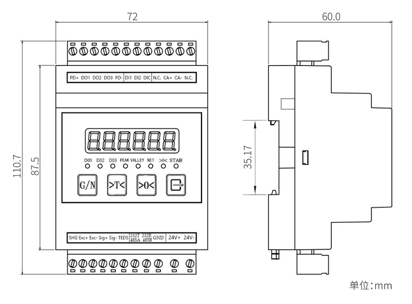 綜合精度優(yōu)于0.01%電源供給24 ±10% VDC